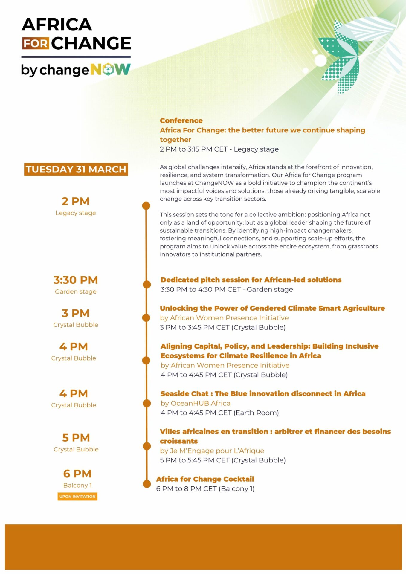 The Africa for Change program is open to all those engaged in or collaborating with initiatives across the African continent, and who wish to connect with key stakeholders driving impact.