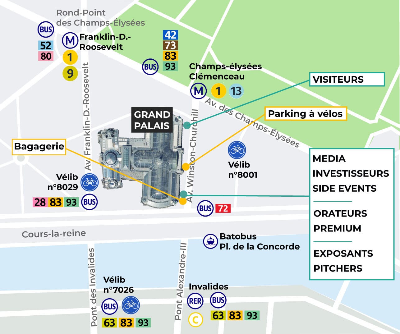 Un parking à vélos gratuit et sécurisé est disponible pour l'événement, devant le Grand Palais.