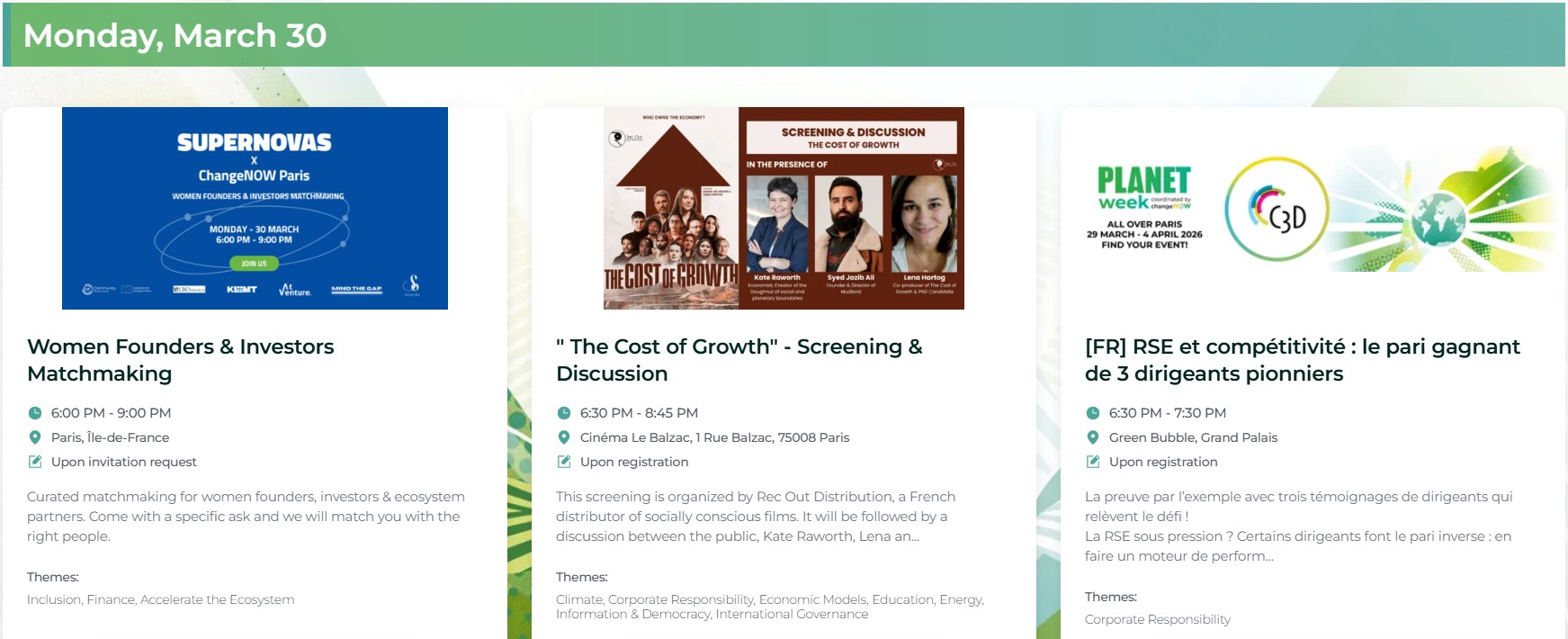 From March 29 to April 04th, 2026 Paris transformed into the beating heart of the global impact movement. Running alongside ChangeNOW 2026 (30-31 March, 01 April 2026), the ChangeNOW Planet Week ignites a wave of action across the city, bringing together bold thinkers, pioneering organizations, and game-changing initiatives.